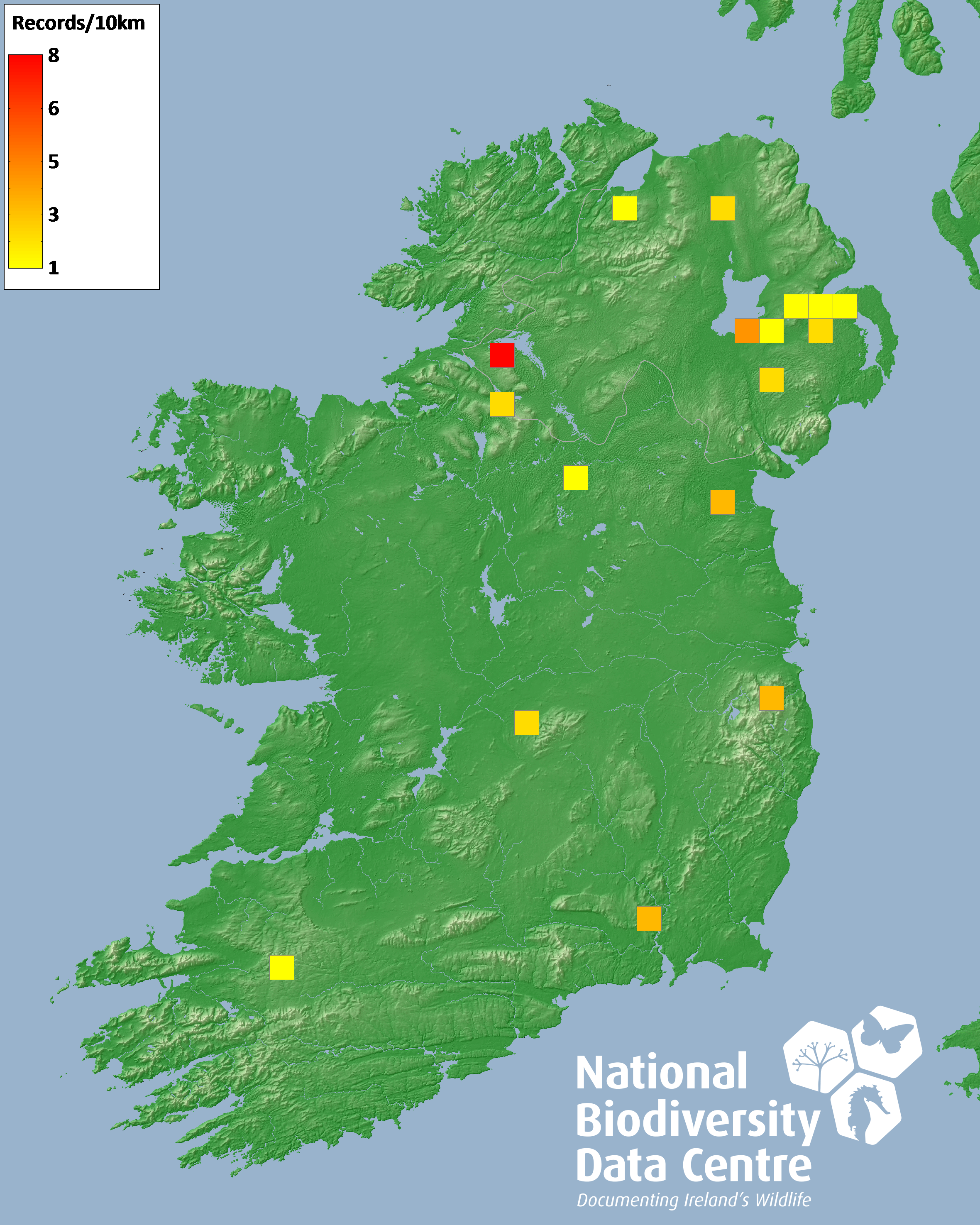 Distribution of the number of records recorded within each 10km grid square (ITM).Marine Map - 50km