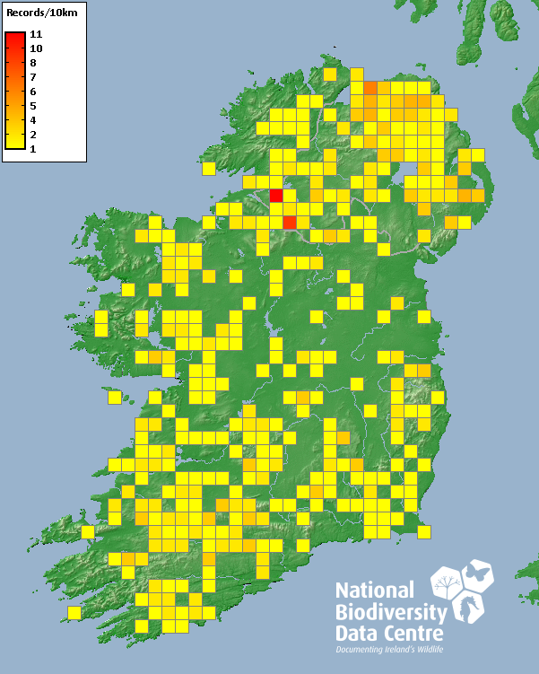 Distribution of the number of records recorded within each 10km grid square (ITM).Marine Map - 50km