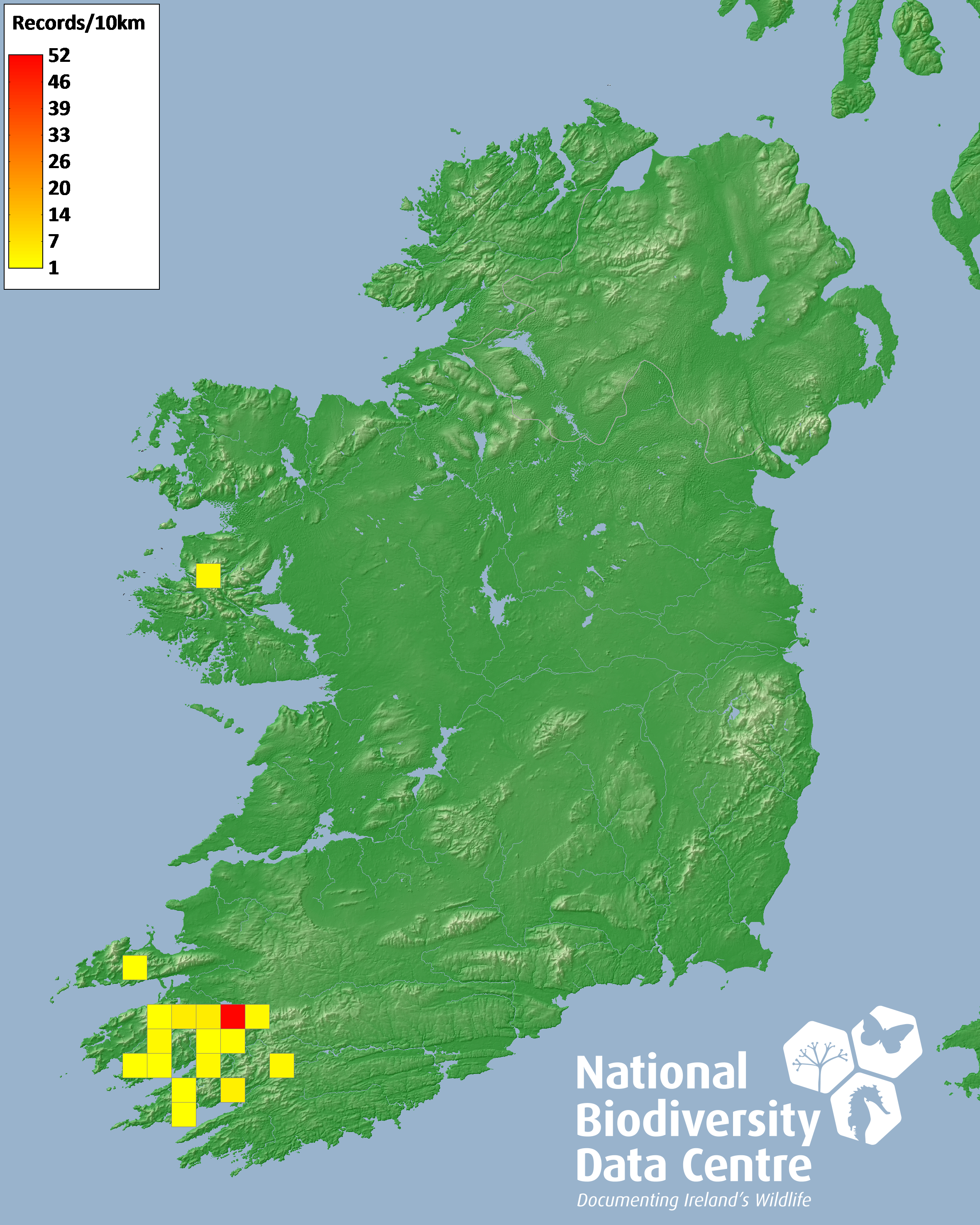 Distribution of the number of records recorded within each 10km grid square (ITM).Marine Map - 50km