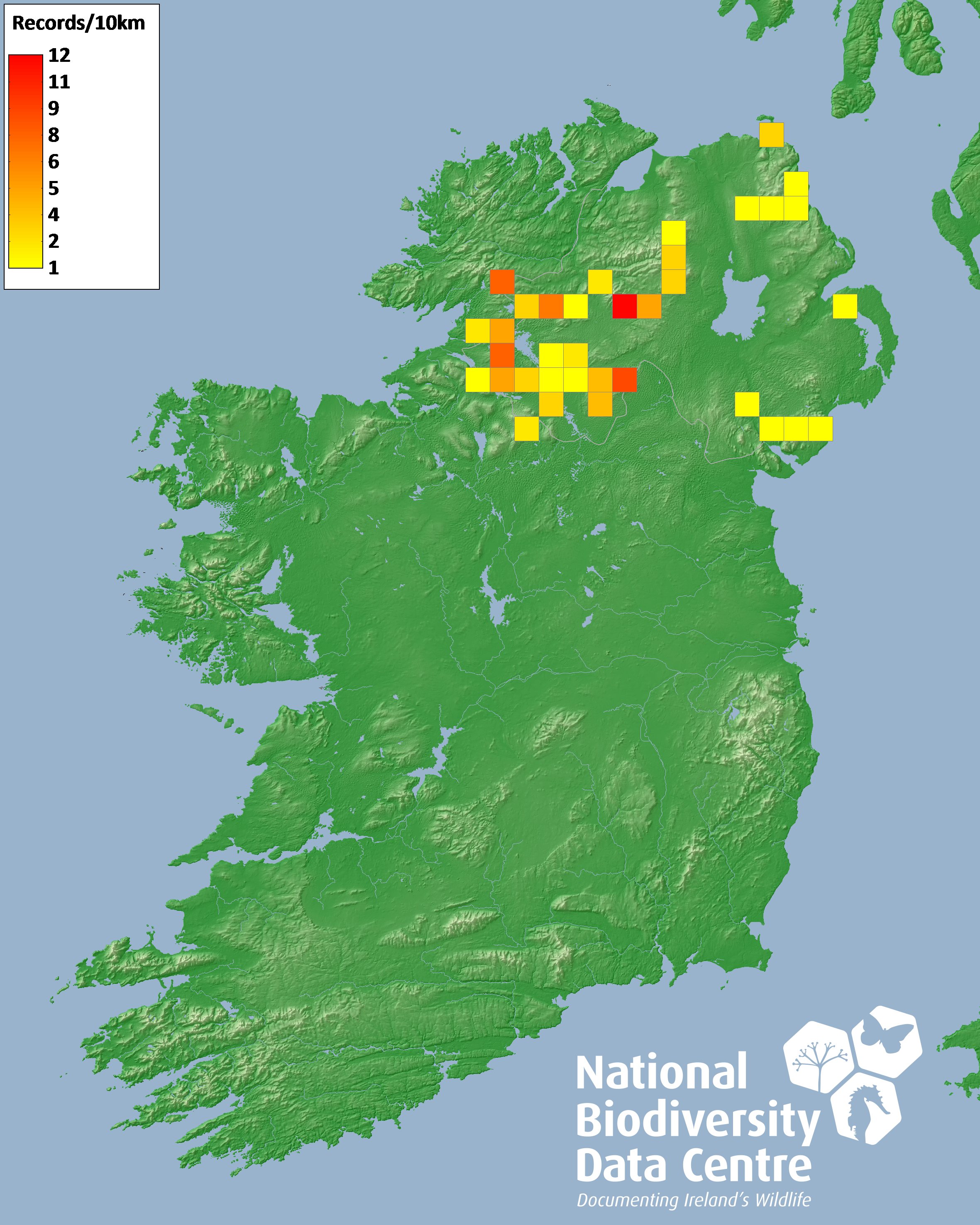 Distribution of the number of records recorded within each 10km grid square (ITM).Marine Map - 50km