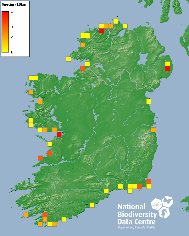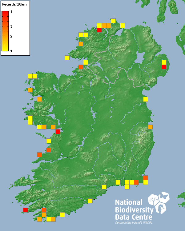 Collated by the National Biodiversity Data Centre from different sources, National Invasive Species Database, Survey: Distribution pattern of Irish invasive seaweed, National Biodiversity Data Centre, Ireland, accessed 18 November 2025, <https://maps.biodiversityireland.ie/Dataset/397/Survey/1790>