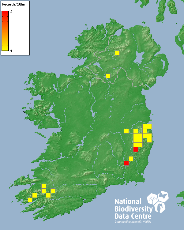 Distribution of the number of records recorded within each 10km grid square (ITM).Marine Map - 50km