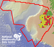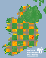 Distribution of the number of records within each 10km grid square (ITM).Marine Map - 50Km