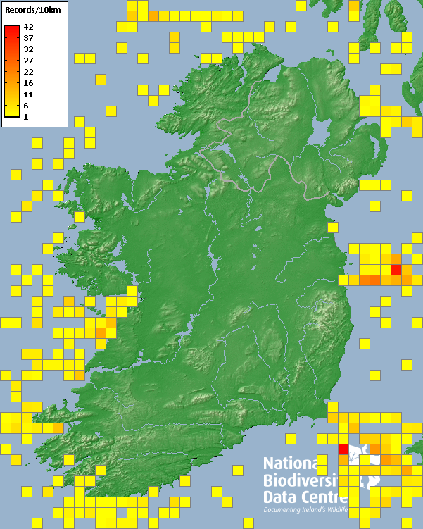 International Council for the Exploration of the Sea (ICES), European Seabirds and Sea (ESAS) Cetacean Sightings 1980-2023, Survey: Joint Nature Conservation Committee, Aberdeen Office (JNCC) 1991-2020, National Biodiversity Data Centre, Ireland, accessed 24 October 2025, <https://maps.biodiversityireland.ie/Dataset/406/Survey/1709>