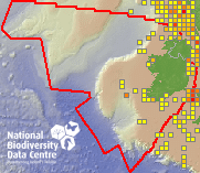 Distribution of the number of species recorded within each 50km grid square (WGS84).Survey records distribution