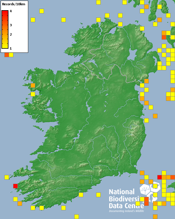 International Council for the Exploration of the Sea (ICES), European Seabirds and Sea (ESAS) Cetacean Sightings 1980-2023, Survey: Joint Nature Conservation Committee, Aberdeen Office (JNCC) 1970-1991, National Biodiversity Data Centre, Ireland, accessed 01 December 2025, <https://maps.biodiversityireland.ie/Dataset/406/Survey/1710>