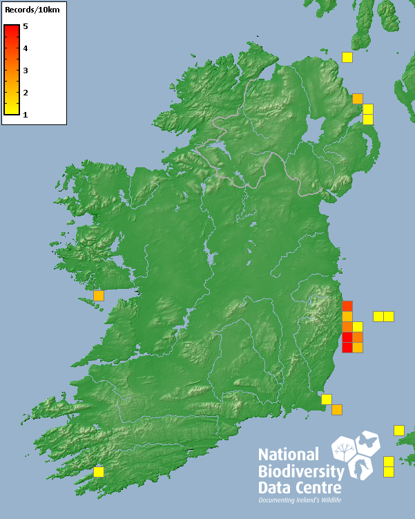 Distribution of the number of records recorded within each 10km grid square (ITM).Marine Map - 50km