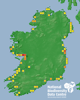 Distribution of the number of records recorded within each 10km grid square (ITM).Marine Map - 50km