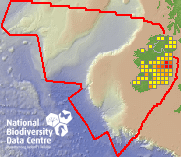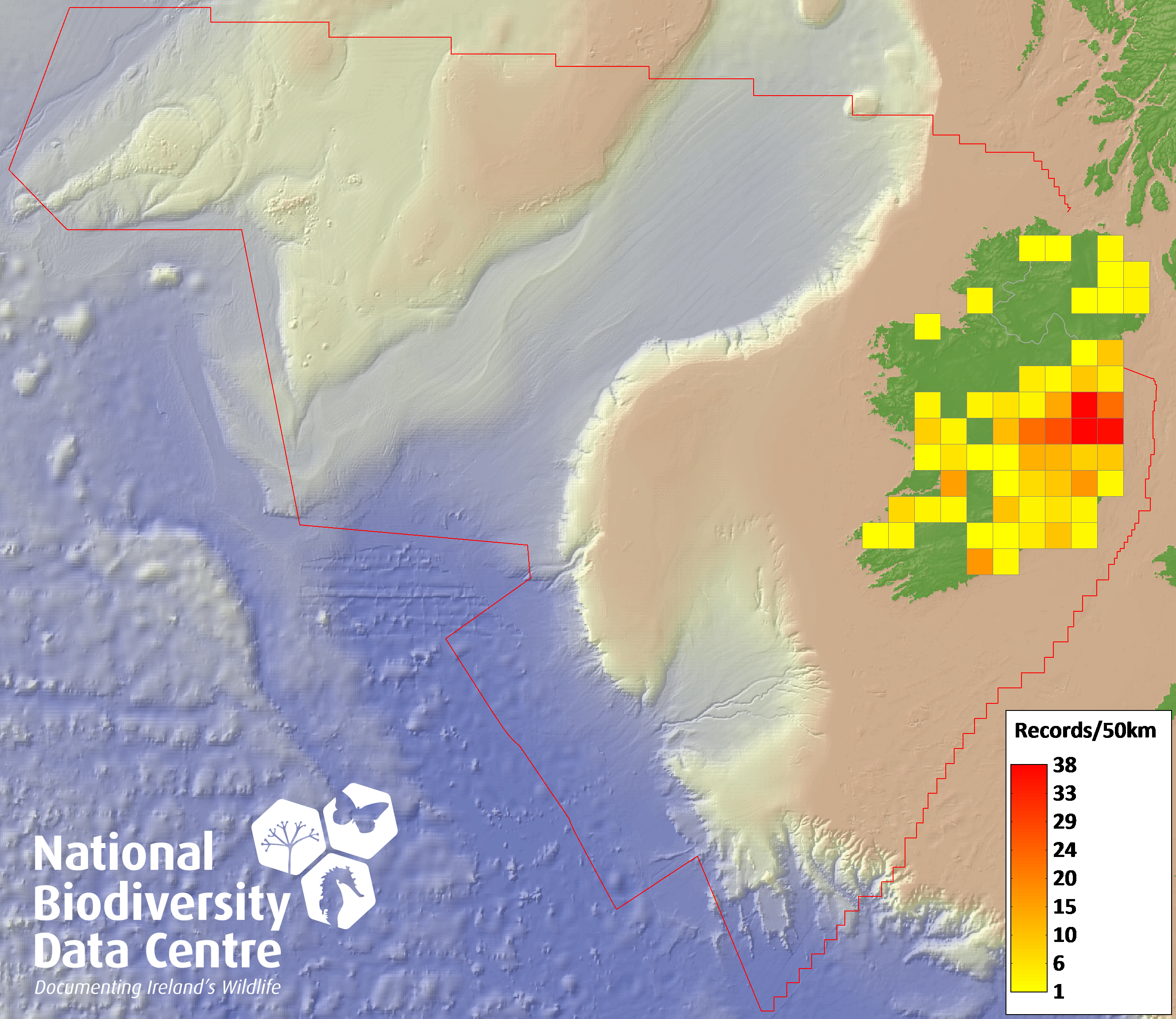 Distribution of the number of records recorded within each 10km grid square (ITM).Marine Map - 50km