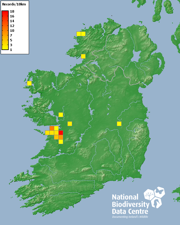 Distribution of the number of records recorded within each 10km grid square (ITM).Marine Map - 50km