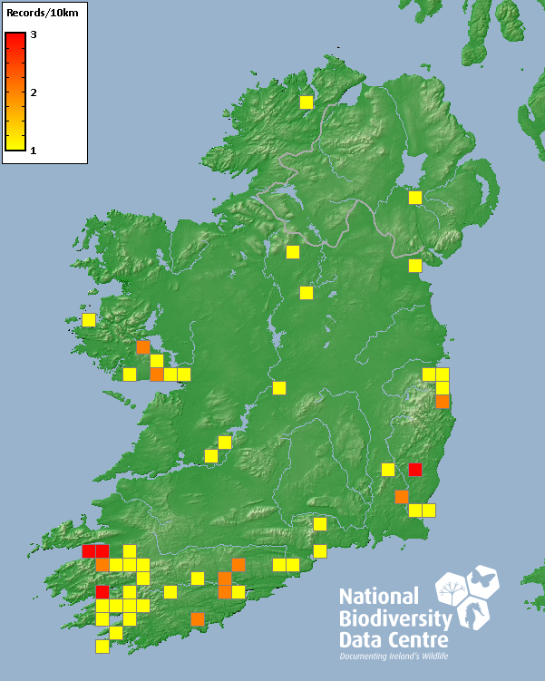 Distribution of the number of records recorded within each 10km grid square (ITM).Marine Map - 50km