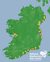 Distribution of the number of records recorded within each 10km grid square (ITM).Marine Map - 50km