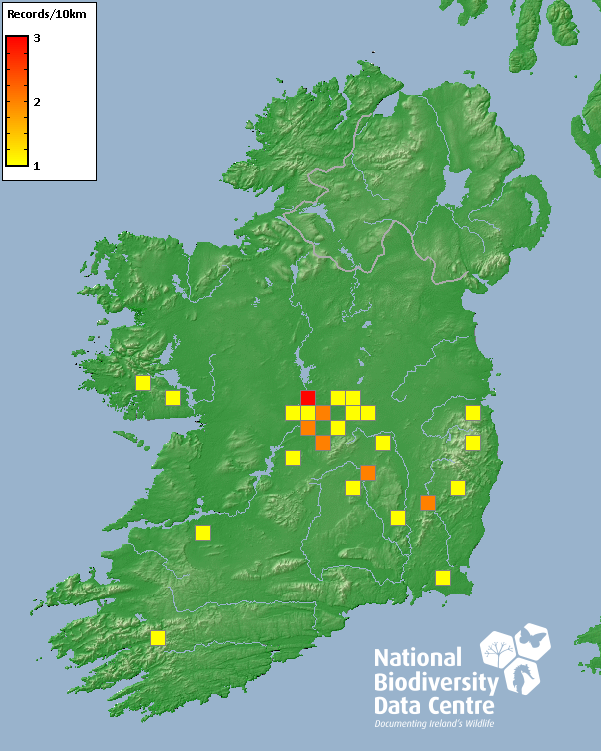 Distribution of the number of records recorded within each 10km grid square (ITM).Marine Map - 50km