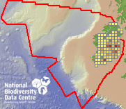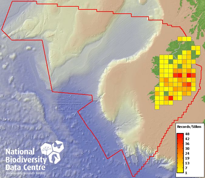 Distribution of the number of records recorded within each 10km grid square (ITM).Marine Map - 50km