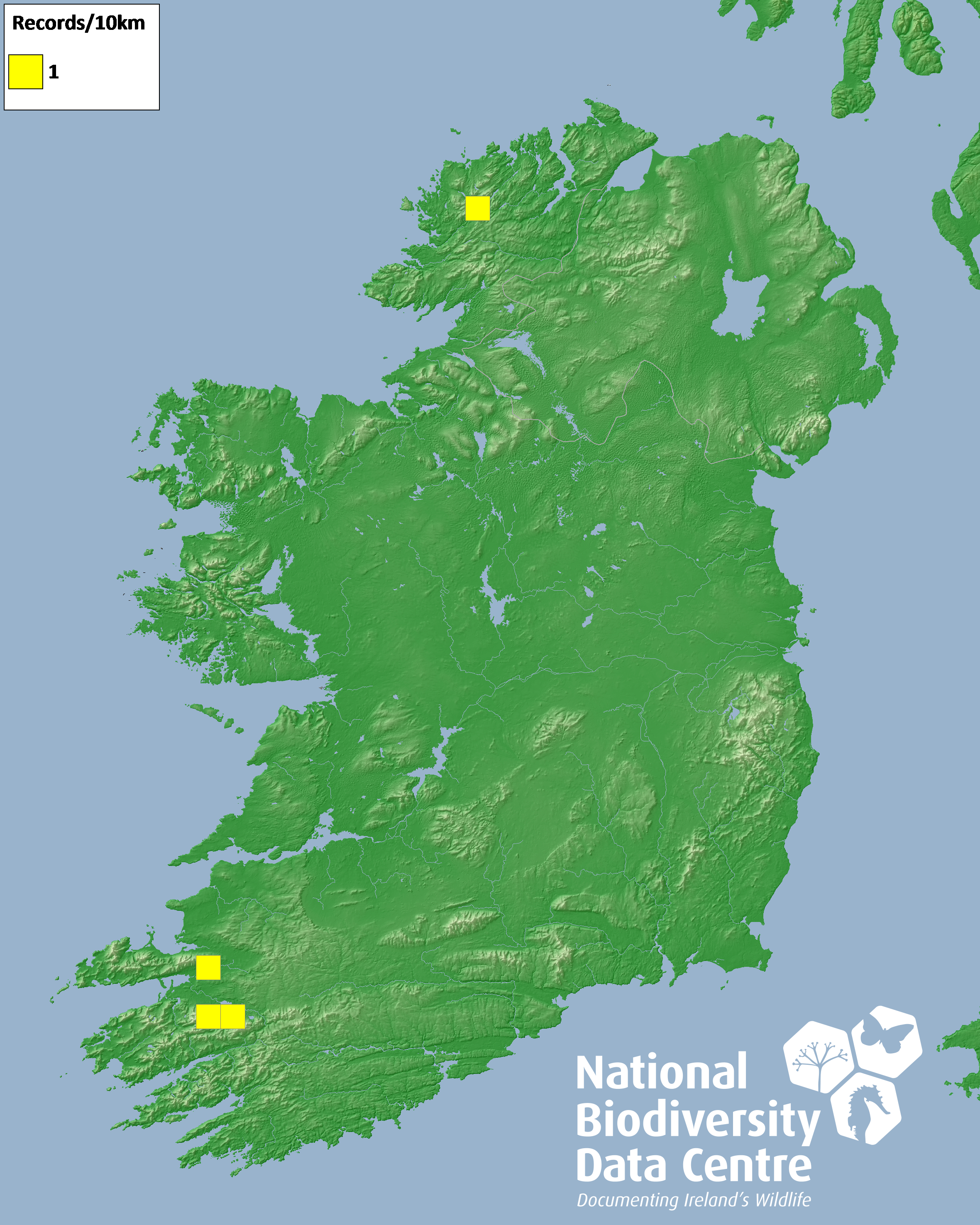 Distribution of the number of records recorded within each 10km grid square (ITM).Marine Map - 50km