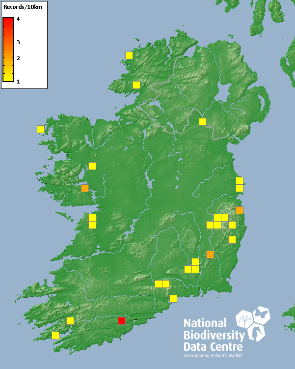 Distribution of the number of records recorded within each 10km grid square (ITM).Marine Map - 50km