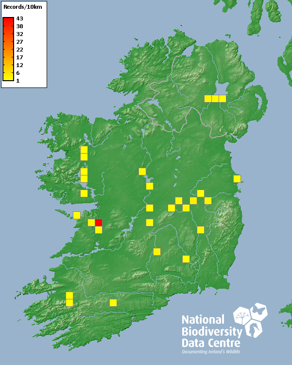 Distribution of the number of records recorded within each 10km grid square (ITM).Marine Map - 50km