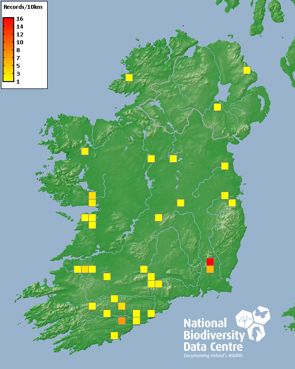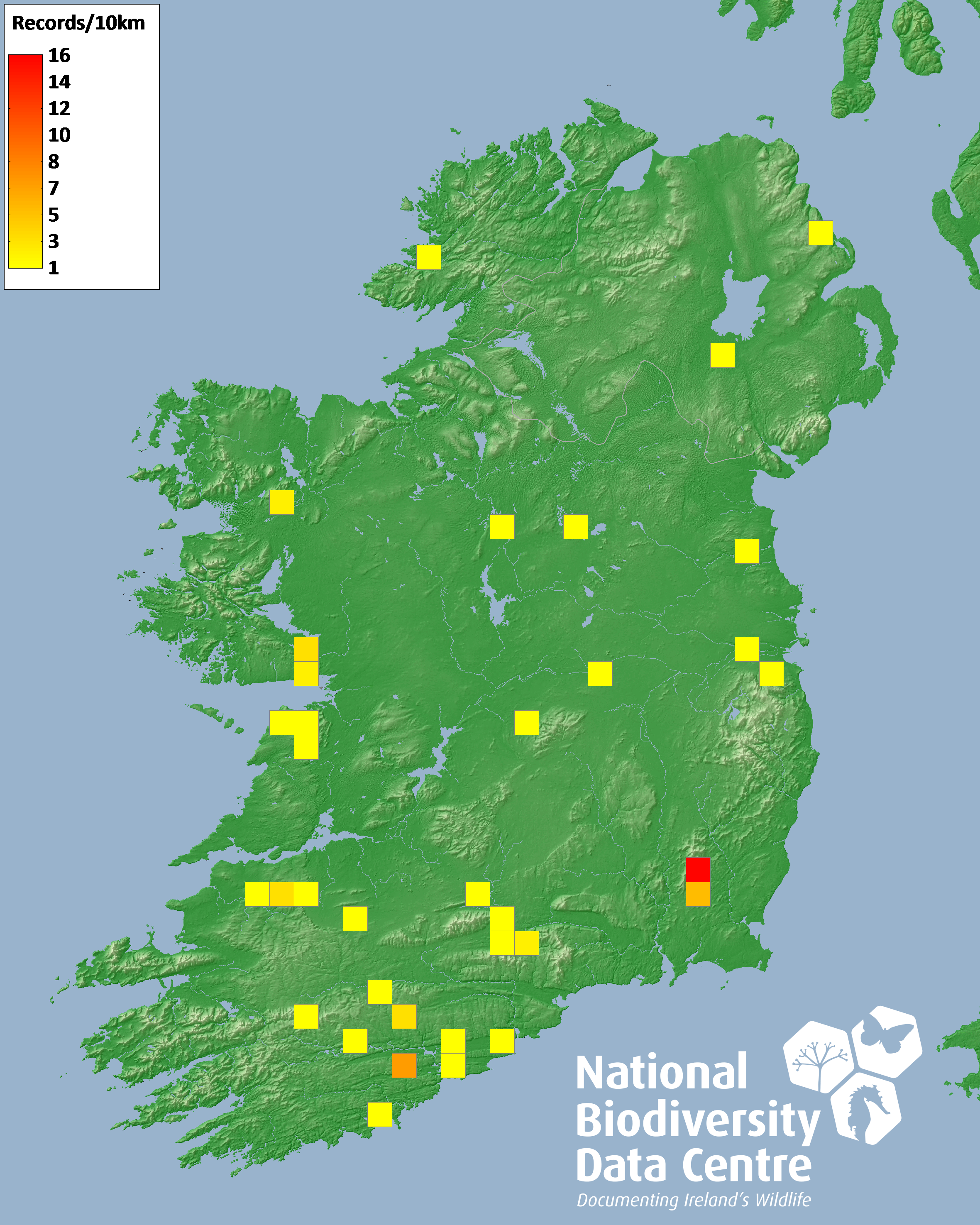 Distribution of the number of records recorded within each 10km grid square (ITM).Marine Map - 50km