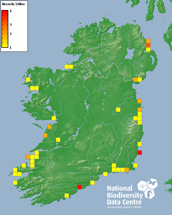 Distribution of the number of records recorded within each 10km grid square (ITM).Marine Map - 50km