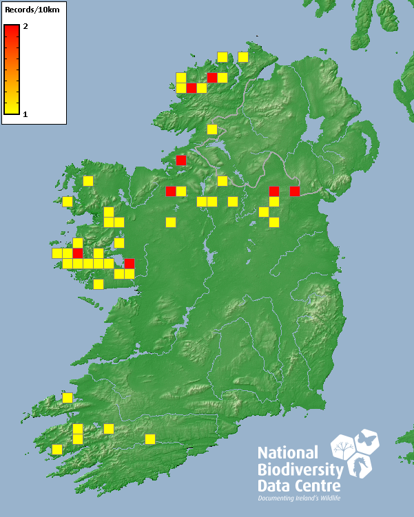 Distribution of the number of records recorded within each 10km grid square (ITM).Marine Map - 50km