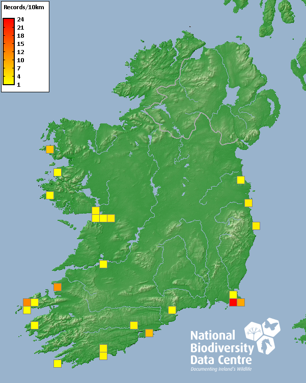 Distribution of the number of records recorded within each 10km grid square (ITM).Marine Map - 50km