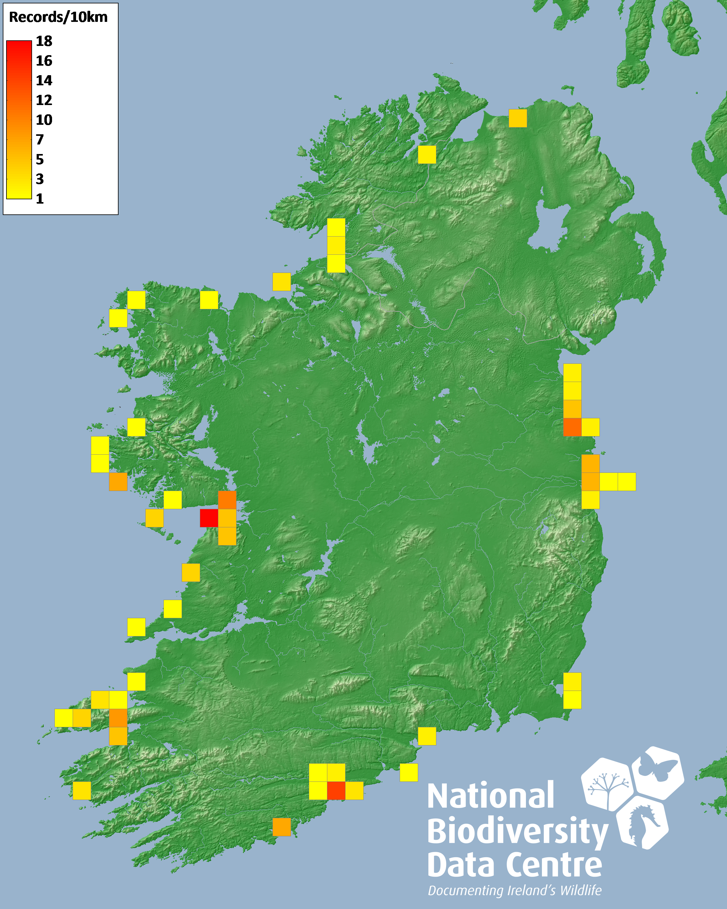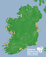 Distribution of the number of records recorded within each 10km grid square (ITM).Marine Map - 50km