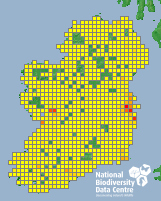 Distribution of the number of records recorded within each 10km grid square (ITM).Marine Map - 50km
