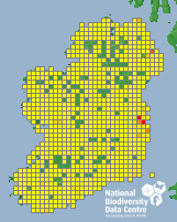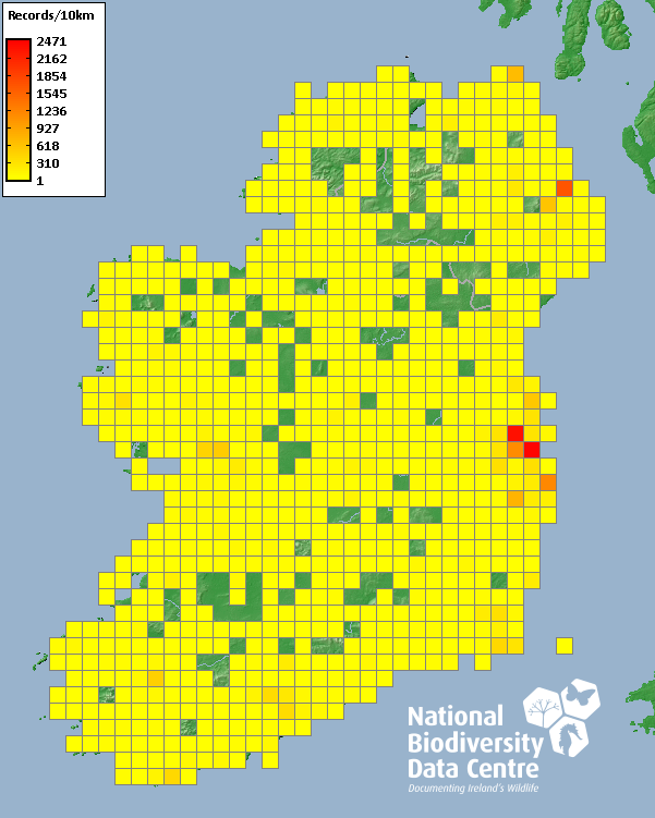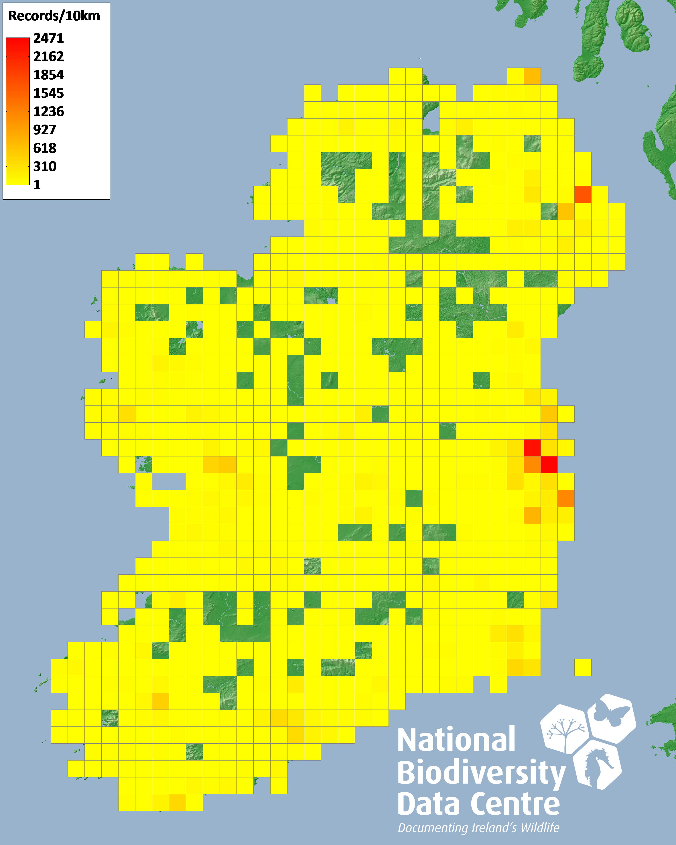 Distribution of the number of records recorded within each 10km grid square (ITM).Marine Map - 50km