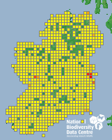 Distribution of the number of records recorded within each 10km grid square (ITM).Marine Map - 50km