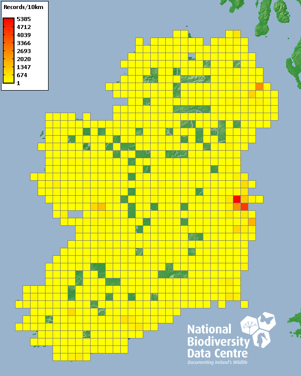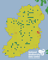 Distribution of the number of records recorded within each 10km grid square (ITM).Marine Map - 50km