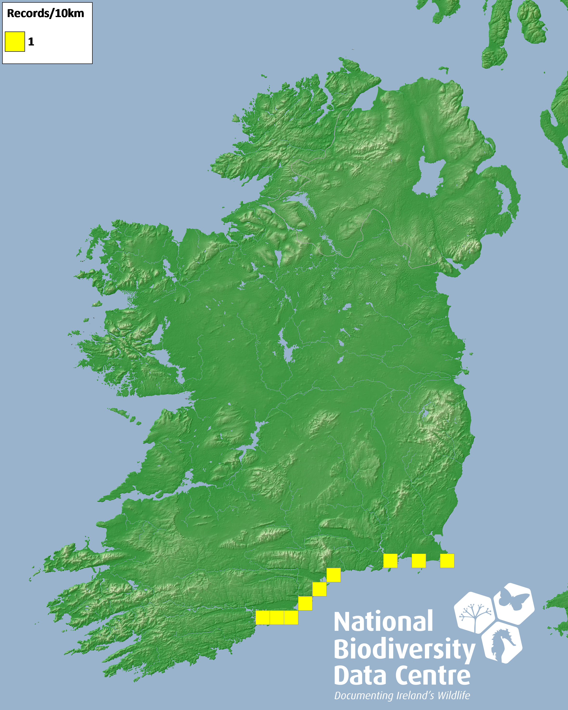 Distribution of the number of records recorded within each 10km grid square (ITM).Marine Map - 50km