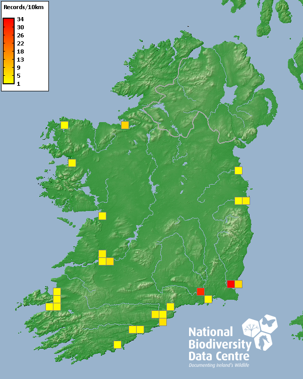 Distribution of the number of records recorded within each 10km grid square (ITM).Marine Map - 50km