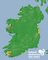 Distribution of the number of records recorded within each 10km grid square (ITM).Marine Map - 50km