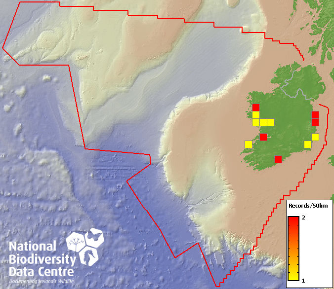 Distribution of the number of records recorded within each 10km grid square (ITM).Marine Map - 50km