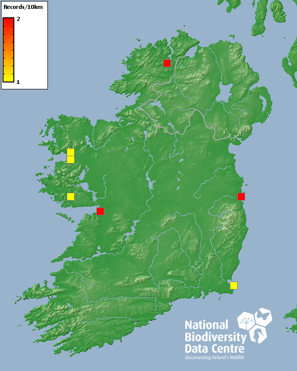 Distribution of the number of records recorded within each 10km grid square (ITM).Marine Map - 50km