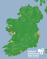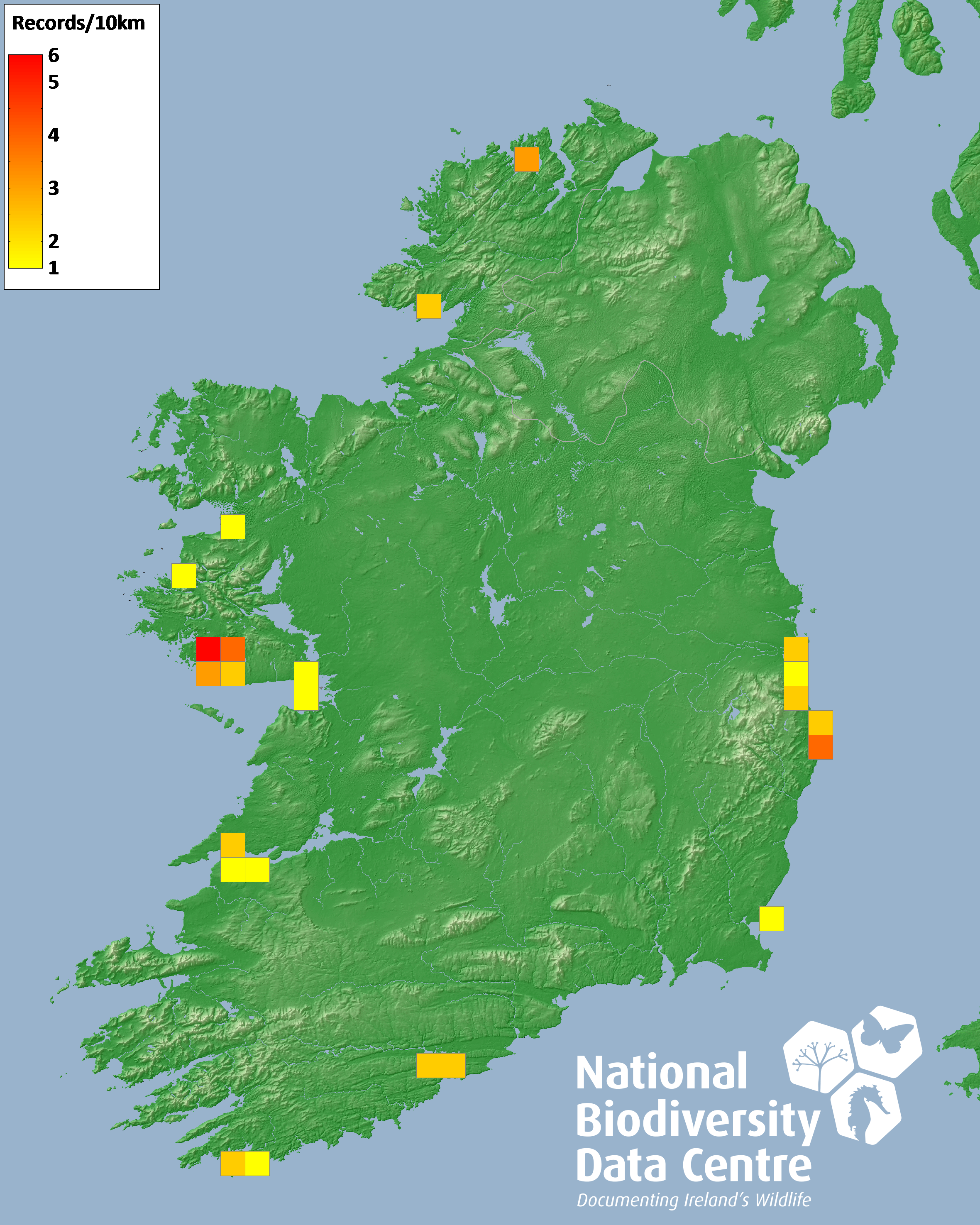 Distribution of the number of records recorded within each 10km grid square (ITM).Marine Map - 50km