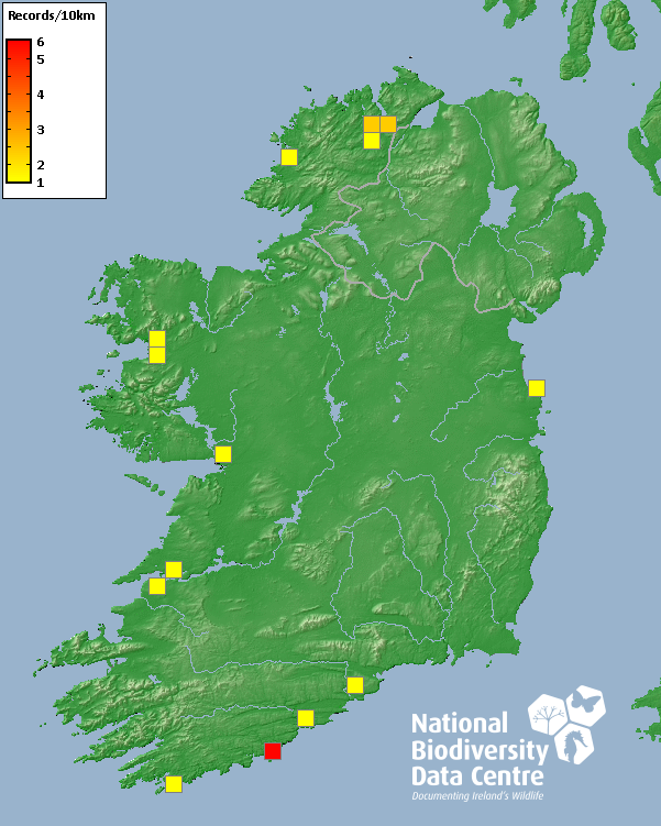 Distribution of the number of records recorded within each 10km grid square (ITM).Marine Map - 50km
