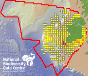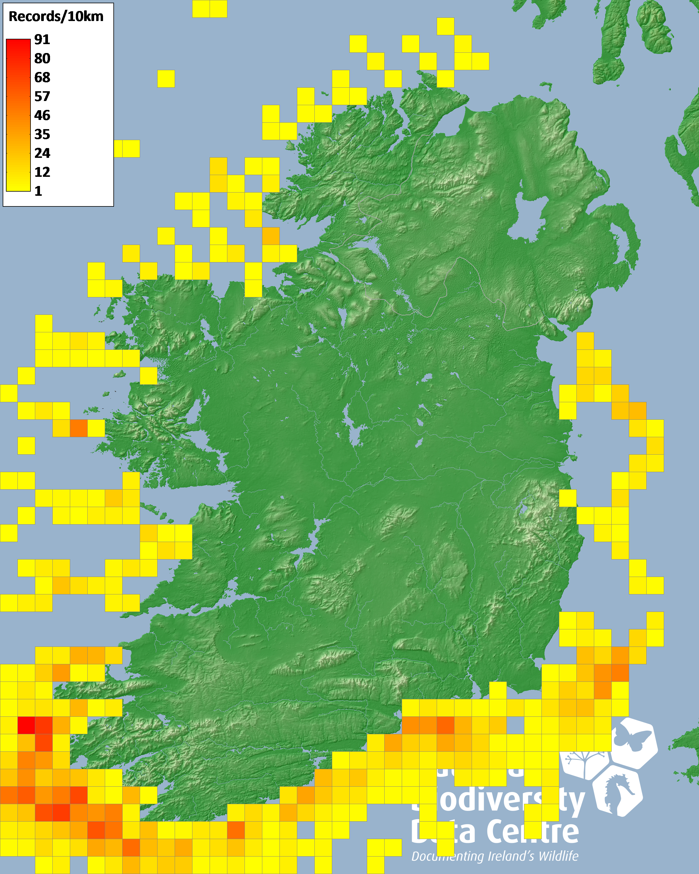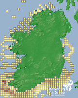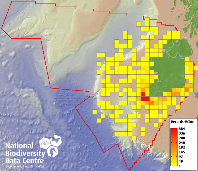 Distribution of the number of records recorded within each 10km grid square (ITM).Marine Map - 50km