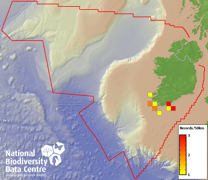 Distribution of the number of records recorded within each 10km grid square (ITM).Marine Map - 50km