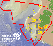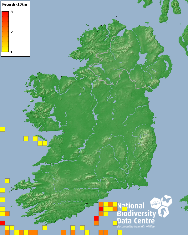 Distribution of the number of records recorded within each 10km grid square (ITM).Marine Map - 50km