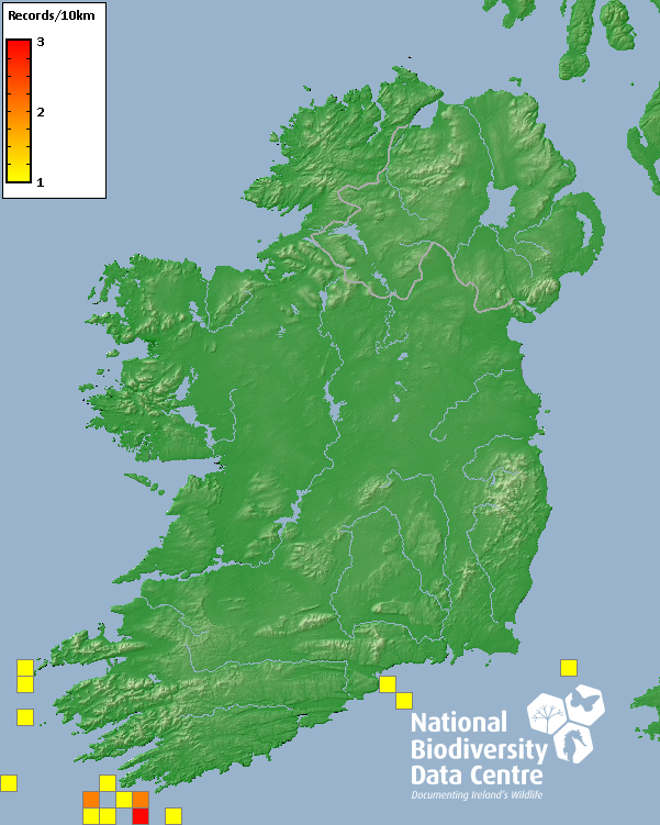 Distribution of the number of records recorded within each 10km grid square (ITM).Marine Map - 50km