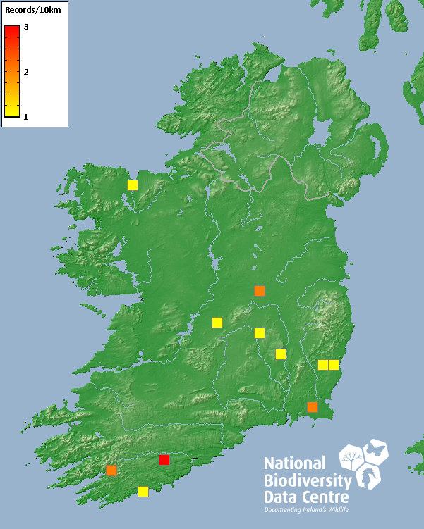 Distribution of the number of records recorded within each 10km grid square (ITM).Marine Map - 50km