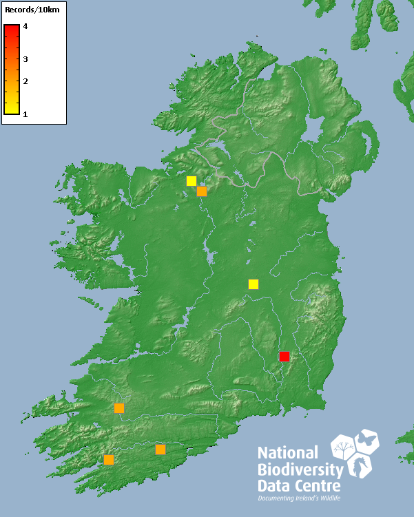Distribution of the number of records recorded within each 10km grid square (ITM).Marine Map - 50km
