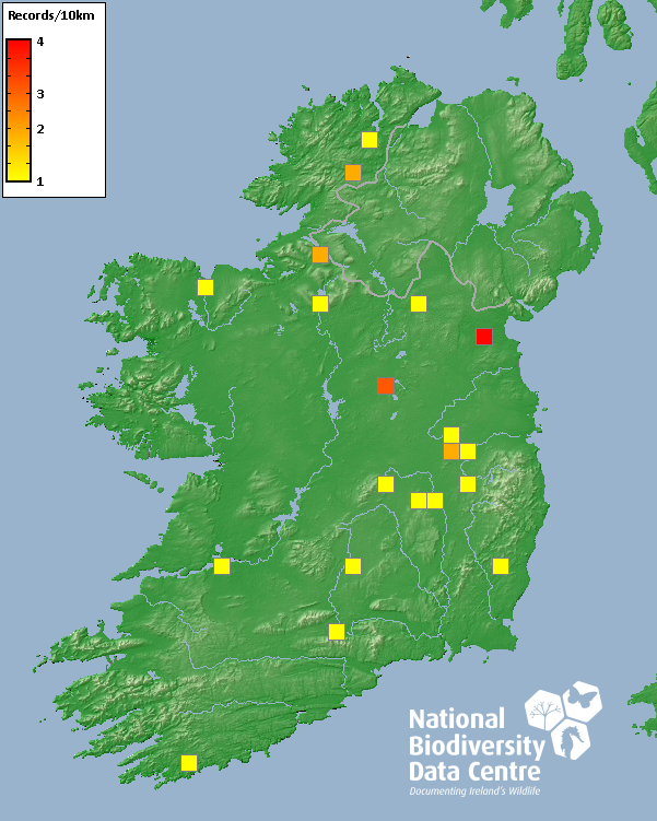 Distribution of the number of records recorded within each 10km grid square (ITM).Marine Map - 50km