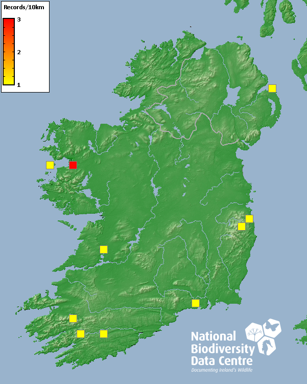 Distribution of the number of records recorded within each 10km grid square (ITM).Marine Map - 50km