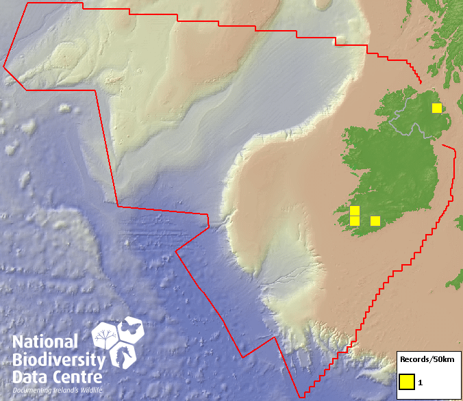 Distribution of the number of records recorded within each 10km grid square (ITM).Marine Map - 50km