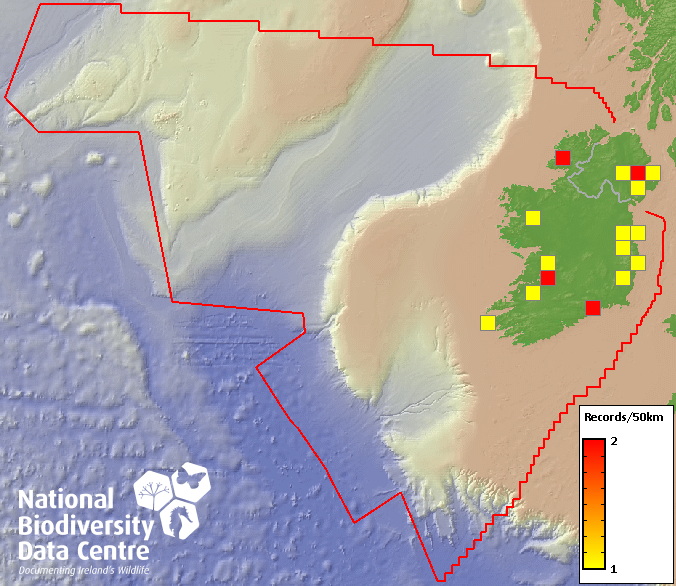 Distribution of the number of records recorded within each 10km grid square (ITM).Marine Map - 50km