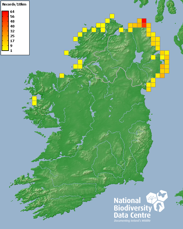 Distribution of the number of records recorded within each 10km grid square (ITM).Marine Map - 50km