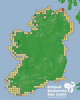 Distribution of the number of records recorded within each 10km grid square (ITM).Marine Map - 50km