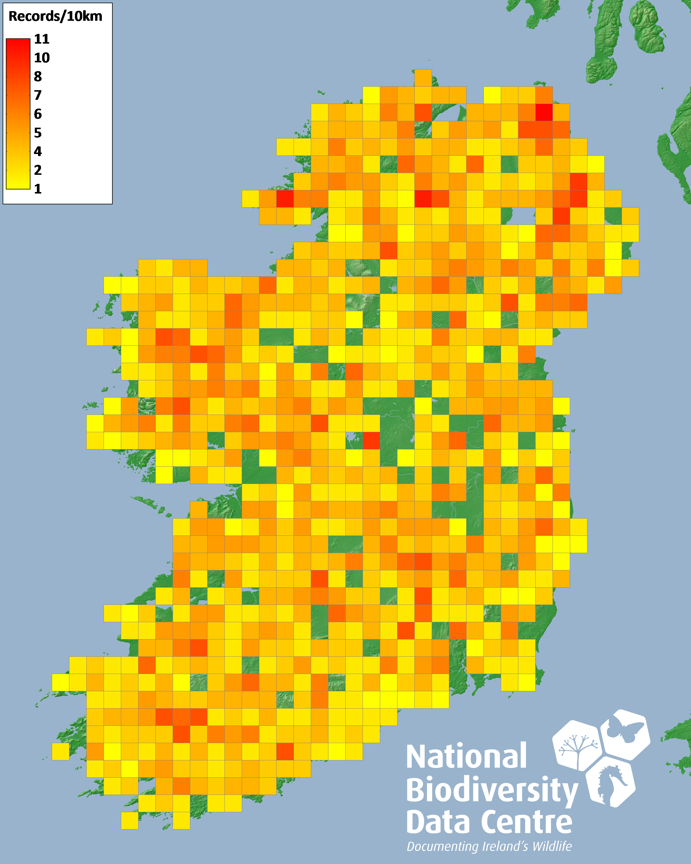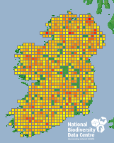 Distribution of the number of records recorded within each 10km grid square (ITM).Marine Map - 50km